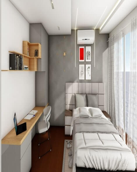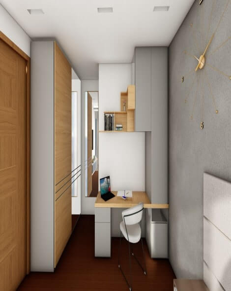 Study units can also saves up space making it more functional, we can design a wall-mounted set of drawers with unique style. Adding a study chair and multi-fucntional study table completes the whole look of study unit. Depending on the size of the room and your love for books we can also add more movable cabinets for smart storage of books or can also be used for stationery, office stuff. This is can be converted into your work desk amazingly setting up with movable ergonomic chair to comfort you and that fits perfectly with your lifestyle.