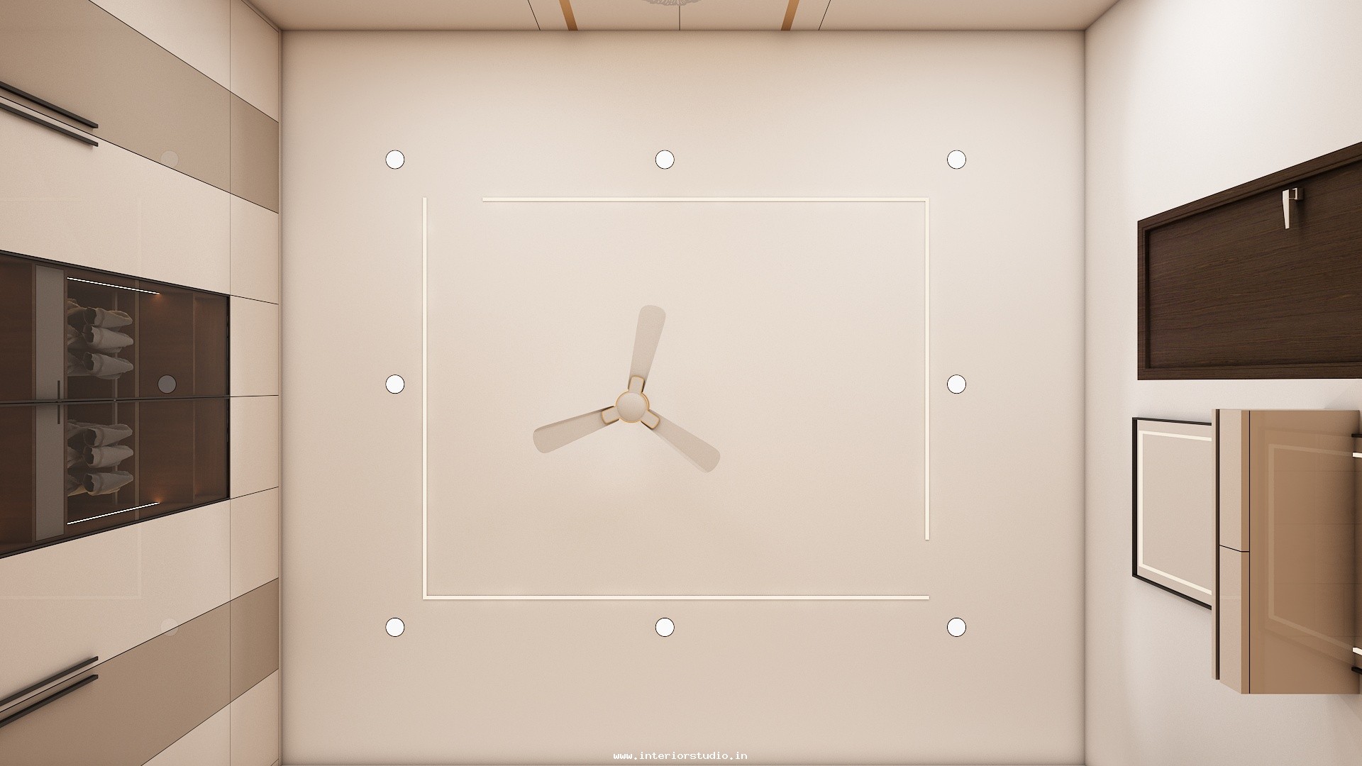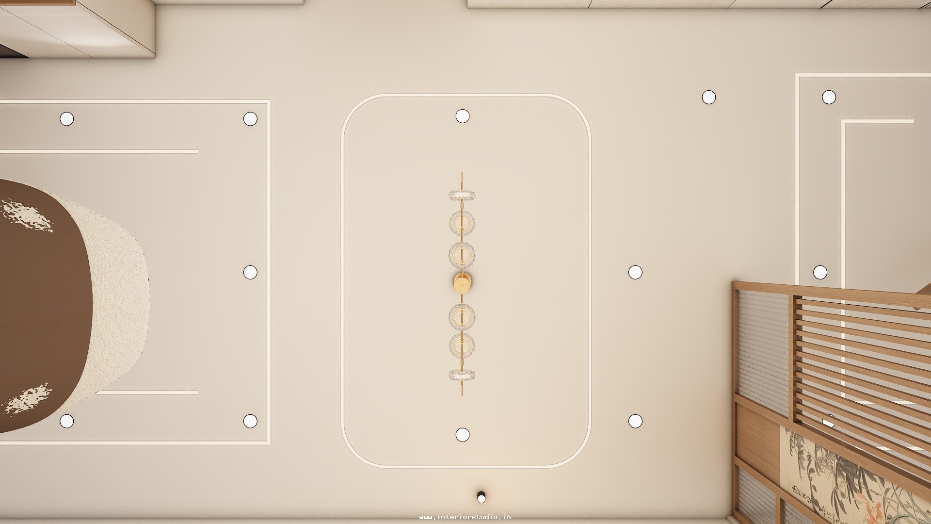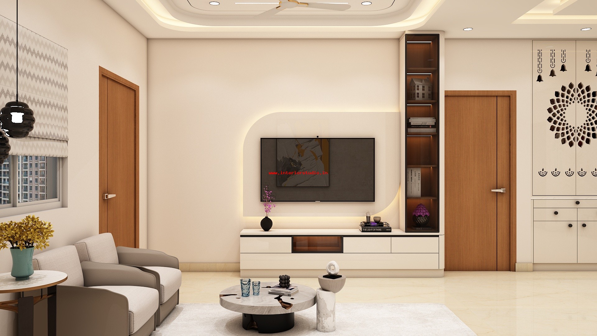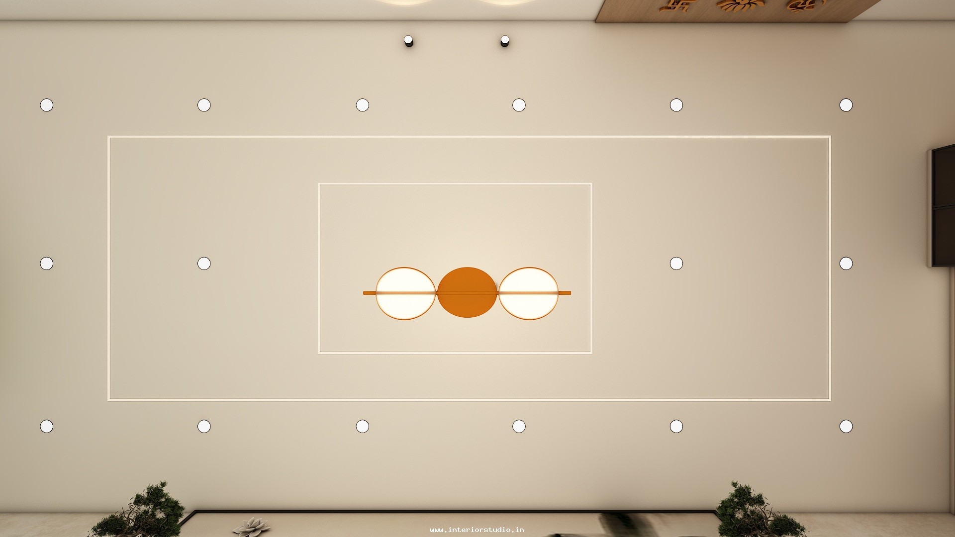Pooja room is where we can find some peace of mind regularly at our homes. So, this room needs to get more space and a clean look to have a peaceful pooja everyday. Our 3D design of the Pooja room represents the Altar Setup with more space for idols, deity photos along with shelves for lamps and other pooja essentials. Also, lighting with LED backlights to bring the glow of pooja mandir, ventilation to make the fog from diyas to spread out along with speakers for playing chants or devotional music and traditional pooja items are added to the room making it more authentic.
