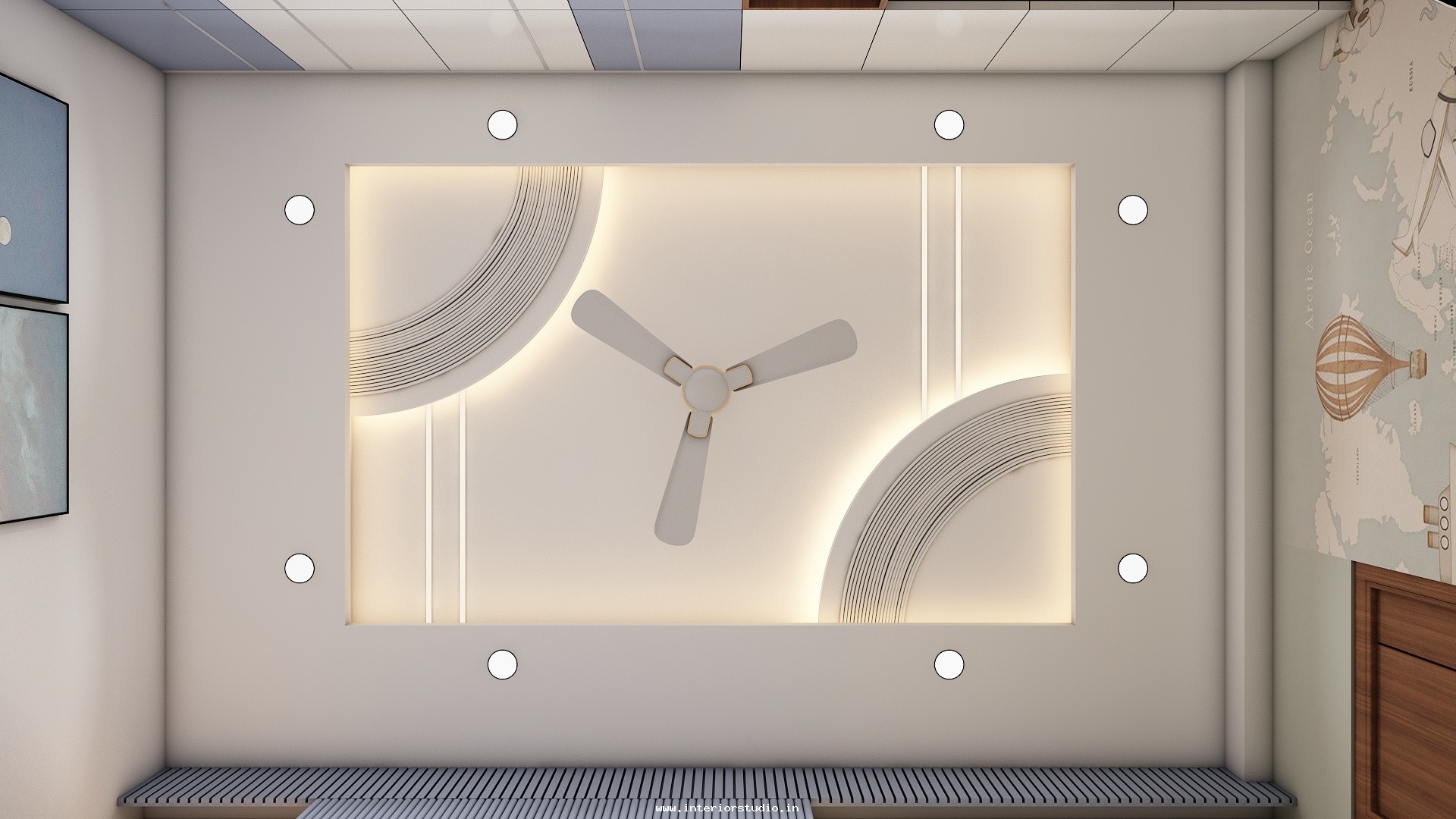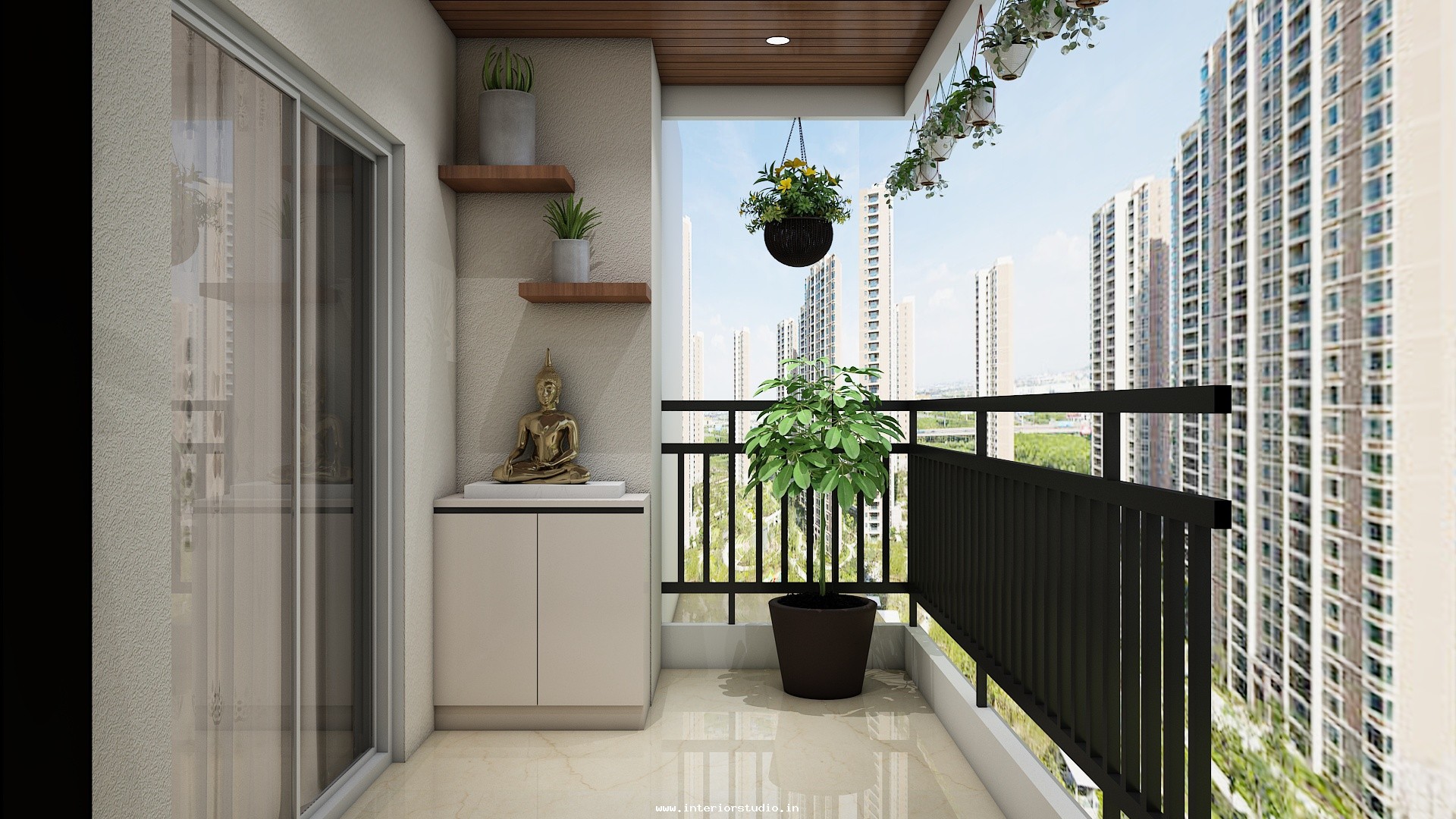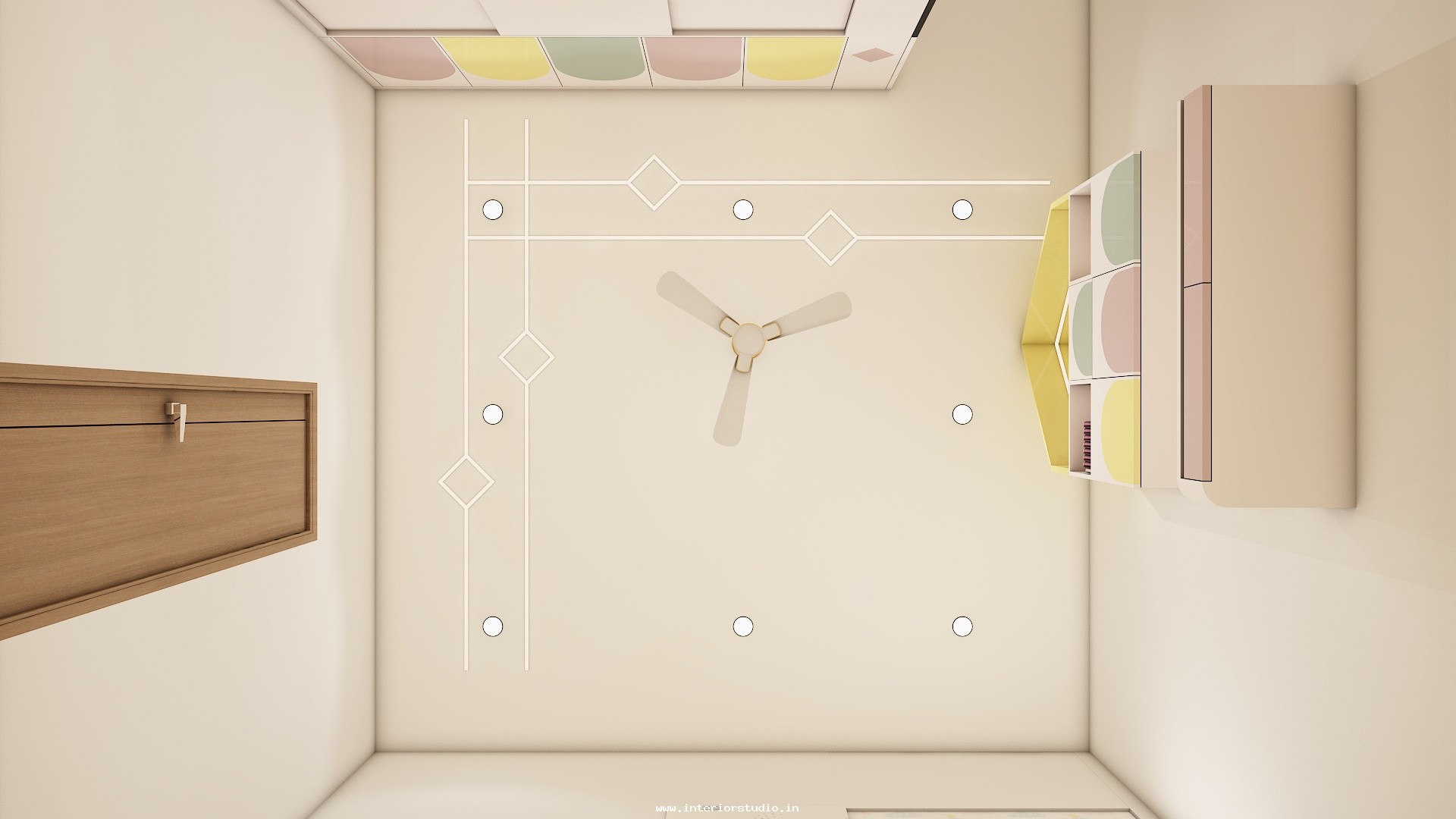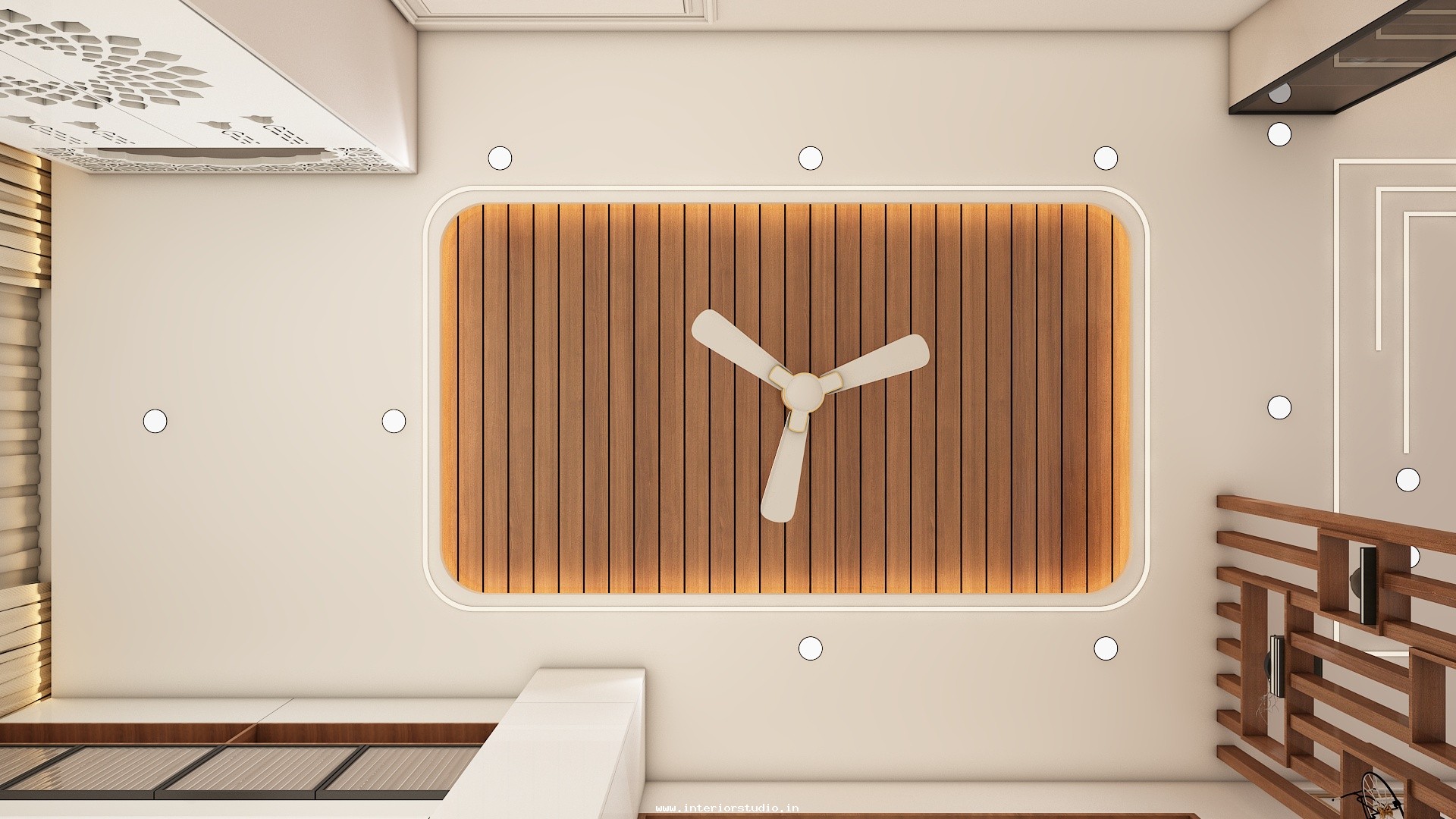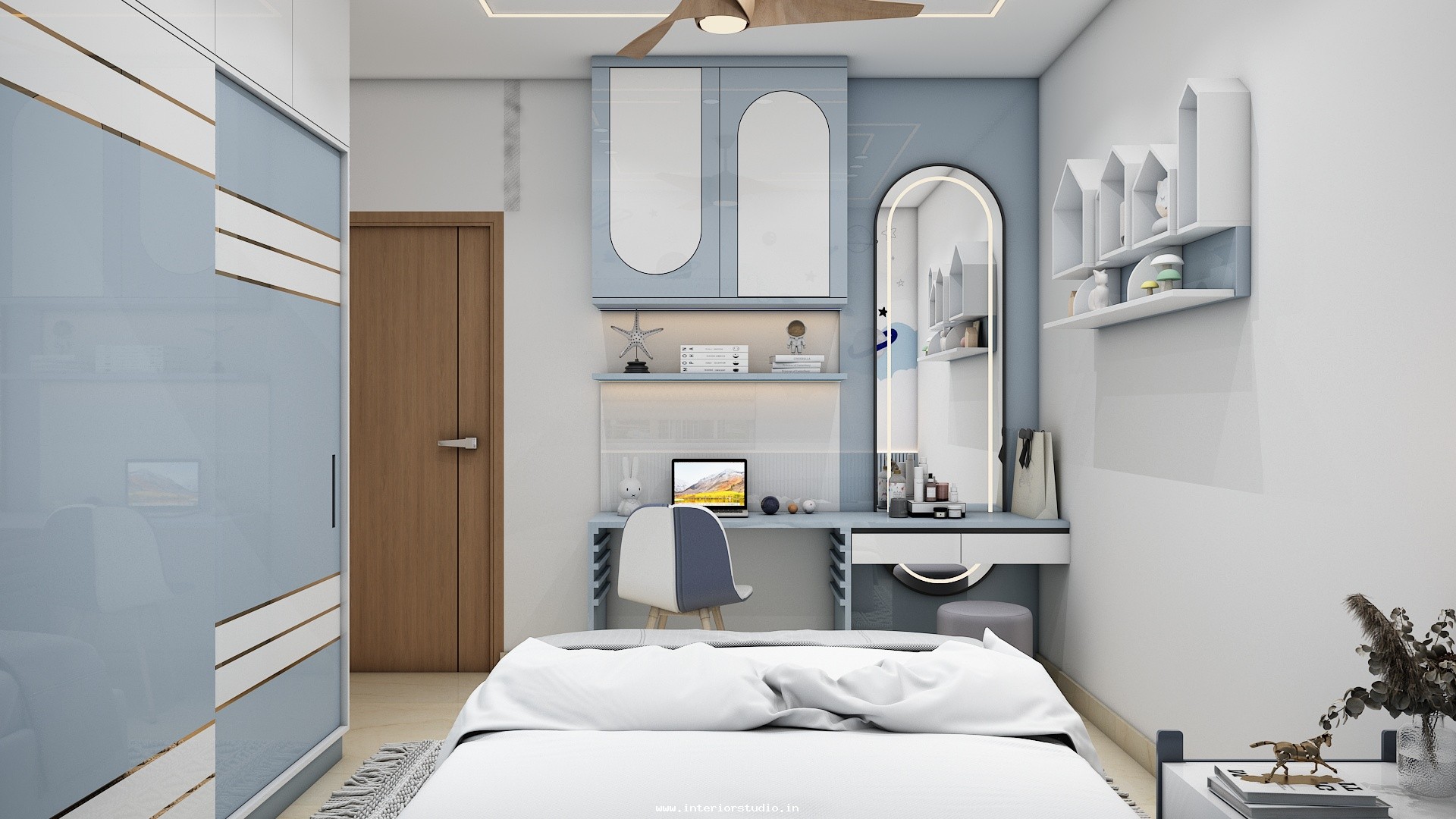 Pooja room is where we can find some peace of mind regularly at our homes. So, this room needs to get more space and a clean look to have a peaceful pooja everyday. Our 3D design of the Pooja room represents the Altar Setup with more space for idols, deity photos along with shelves for lamps and other pooja essentials. Also, lighting with LED backlights to bring the glow of pooja mandir, ventilation to make the fog from diyas to spread out along with speakers for playing chants or devotional music and traditional pooja items are added to the room making it more authentic.