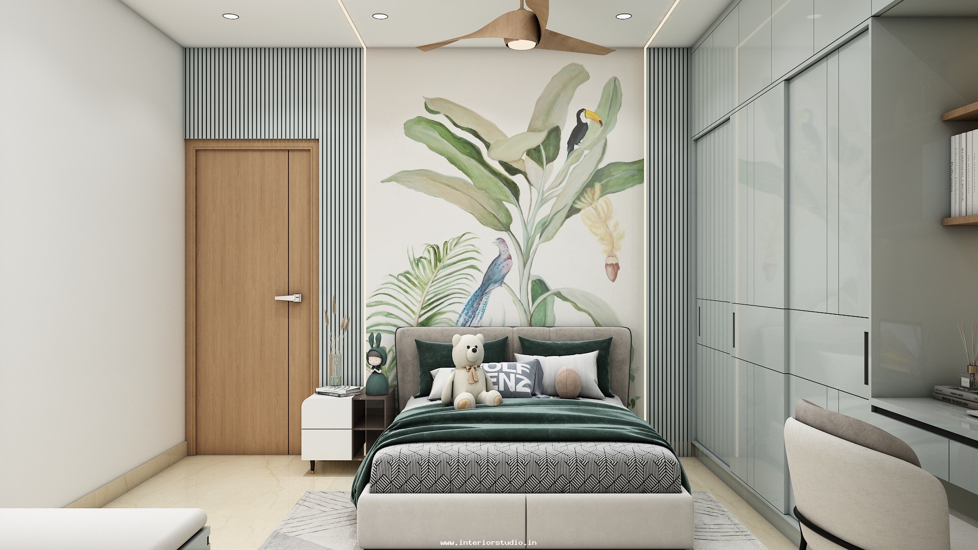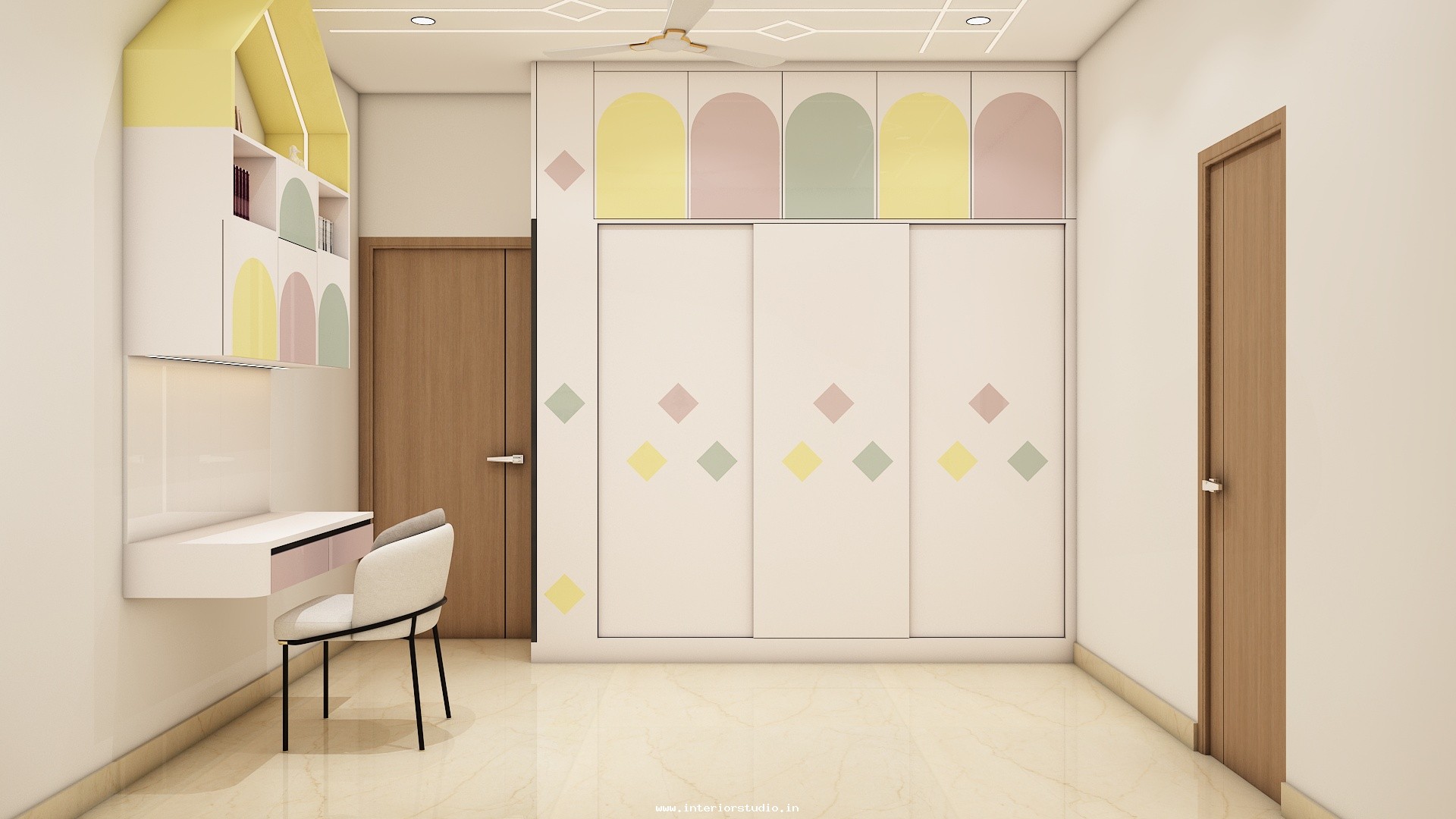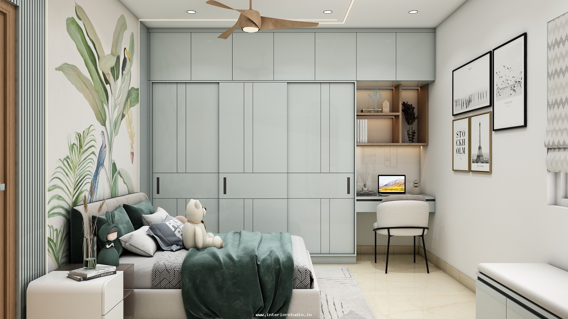 A bedroom can be decorated more attractively with creating a comfortable & personal refreshing place. Our designs enhance the beauty of the bedroom with details of bed positioning, headboards, pillows for comfort, nightstands for reading space with built in lamps, wardrobes to organize shoes, clothes etc with mirrors, dressing area with space for cosmetics, jewelry, grooming tools etc and floor carpet & colored wall finishes which can give more attraction to the bedrooms.