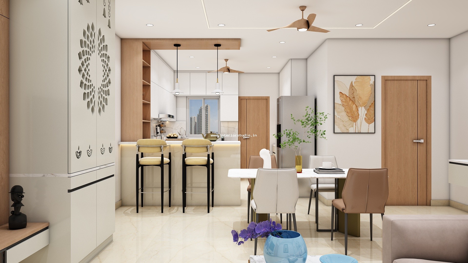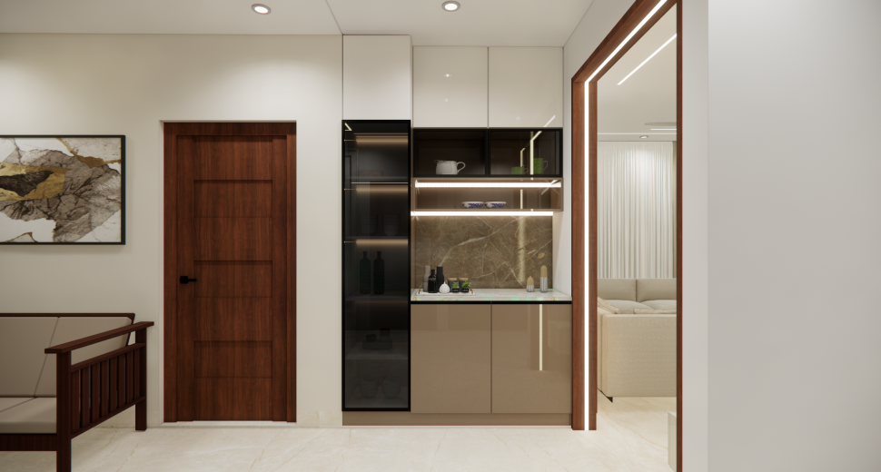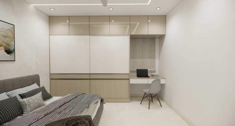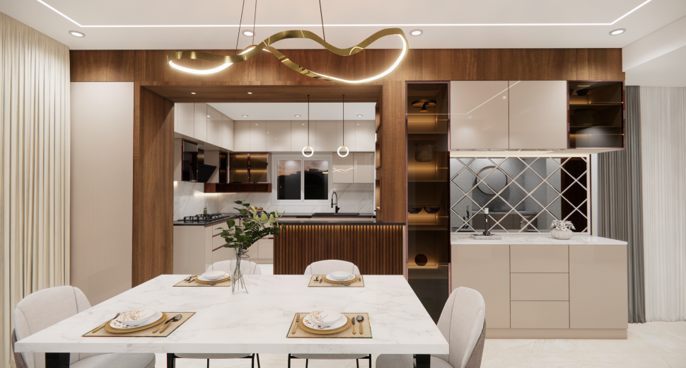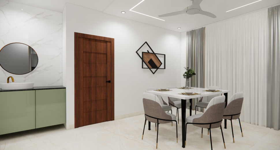We provide such clear, accurate and stunning 3D home interior designs representing the realistic sense of layout. Our home designs include the Kitchen, Living Room, Pooja Room, Dining room, Bedroom, Foyer & False Ceiling.