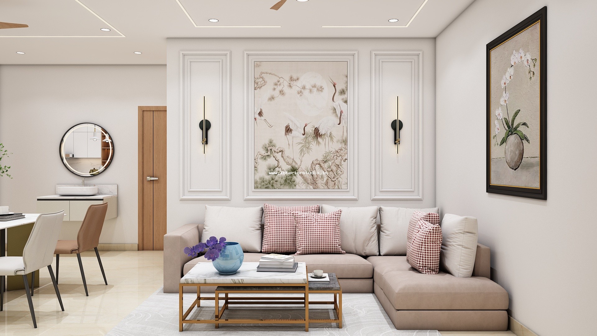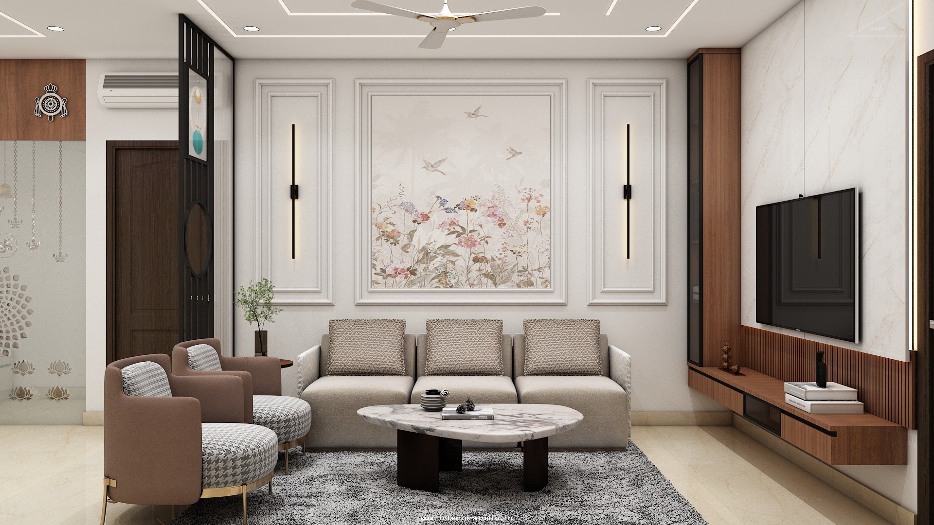 Living room plays the main part of interiors as people choose to keep the entrance attractive so that guests may like the ambience and get impressed. Living rooms usually include sofas, chairs, TV units and some decorative items. Our 3D design for the living room enhances your living space and adds the best attractive & stunning look with furniture arrangement, lighting design like Chandeliers, floor lamps, wall finishes like wallpapers, floor rugs, decorative elements like indoor plants or artwork and more. We provide you the 3D design visualization from multiple angles to get the complete feel of the space.