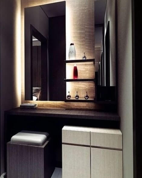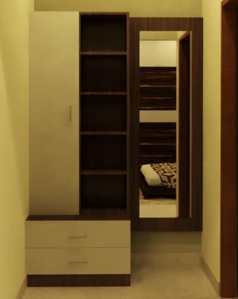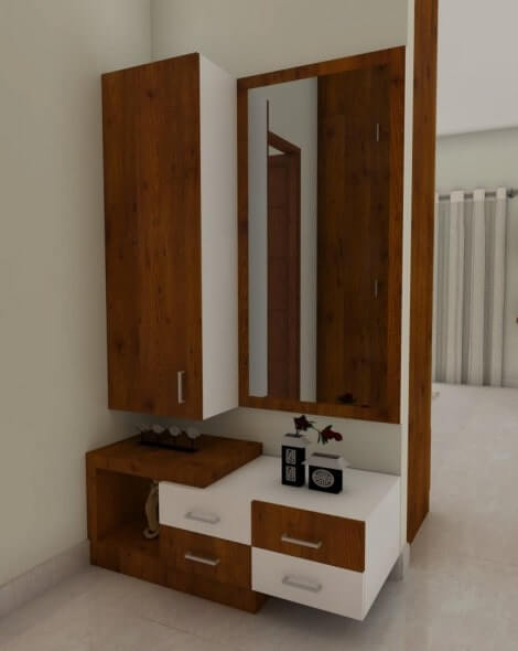 At Interior studio, we design the dressing tables with supreme quality hard wood from premium brands that is durable for long years keeping the strength up. To accompany this we can add full length mirrors, closet style mirrors or hal-mirrors of your choice with different racks to store your makeup and essentials. Get you customaized dressing unit as you desired to fit into your beautiful home.