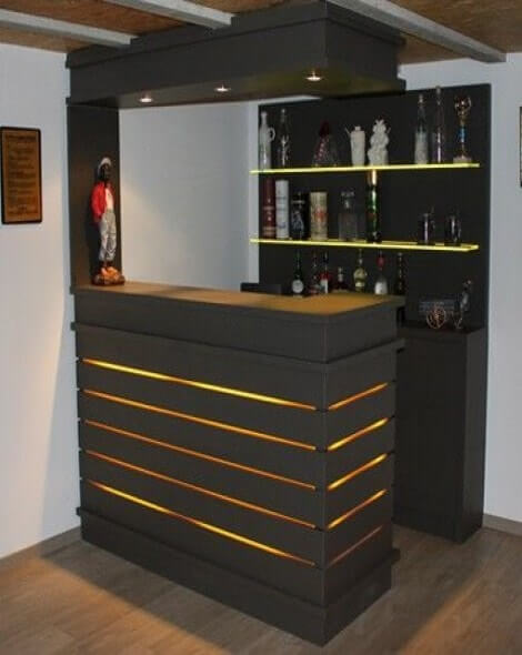 Well, this is the exquisite option to your home to upgrade your social life and host home parties at your comfort. We provide two options, we can furnish your dining space and add a little corner to this bar unit or we can exclusively design a small bar with a countertop and wooden racks to store all your wine. We have a lot of beautiful options to decorate your bar corners and units magnificently and we also incorporate different elements to the bar units to give the vibe.