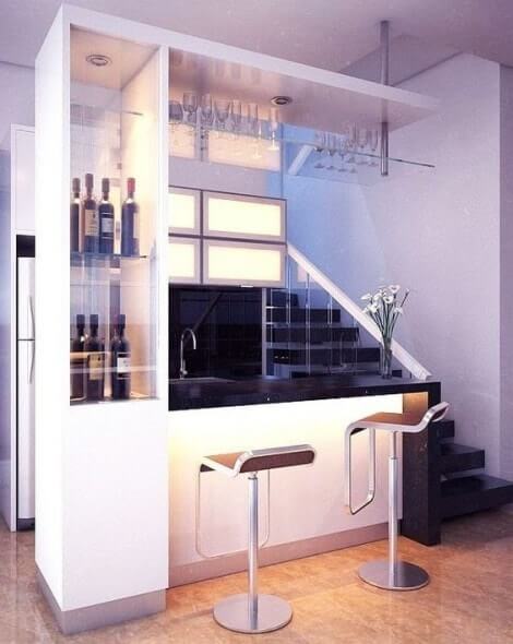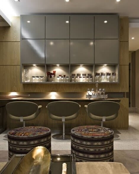 Designing your bar space with little tricks is our responsibility to make it look elegant adding a modern and vintage touch according to your preferences. We can make that little entertaining space lively by adding some music unit and setting the glasses in the wooden racks. Decorating the countertops and setting a mini-refrigerator to store your vintage old drinks would be a lovely idea!
