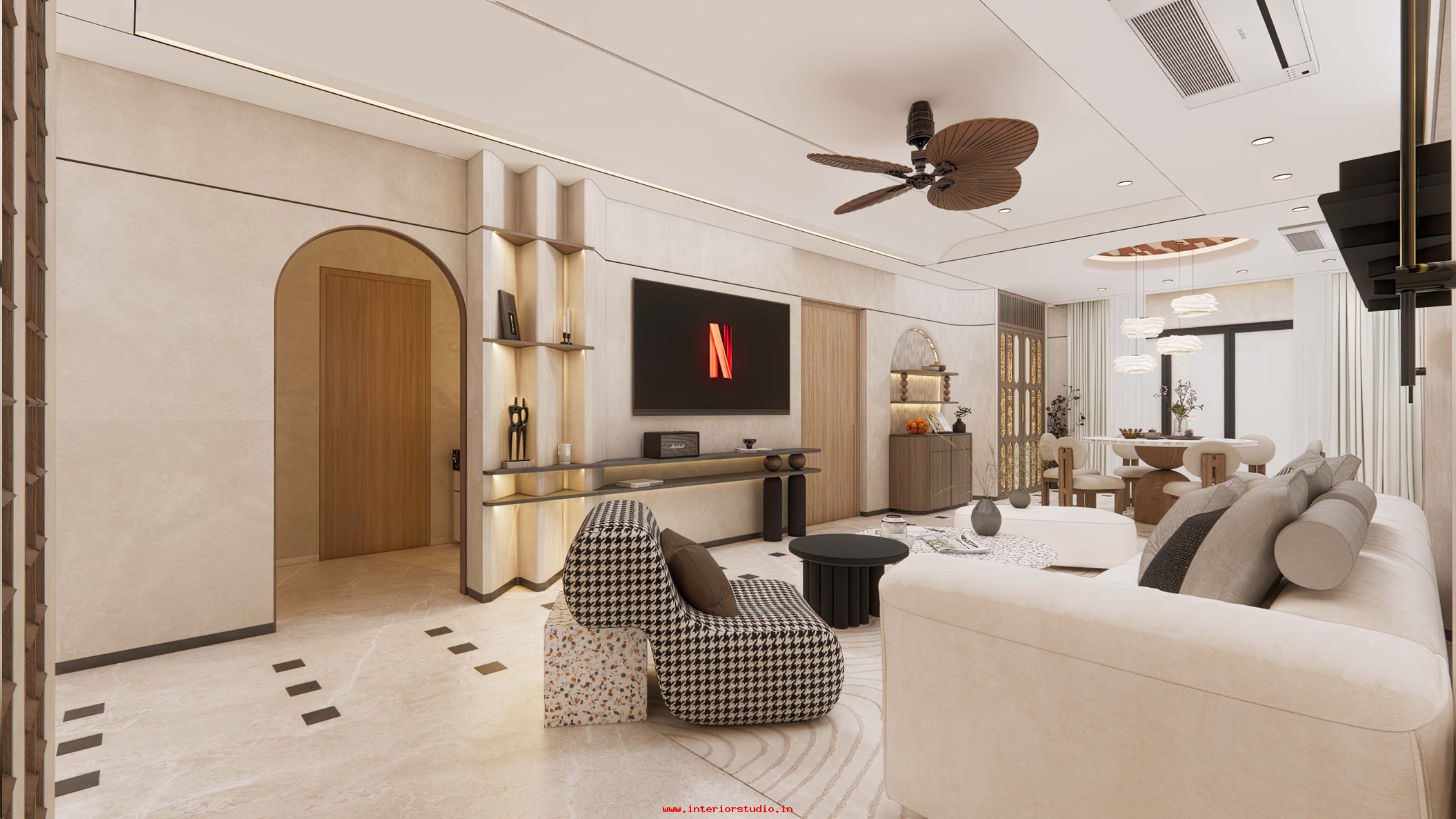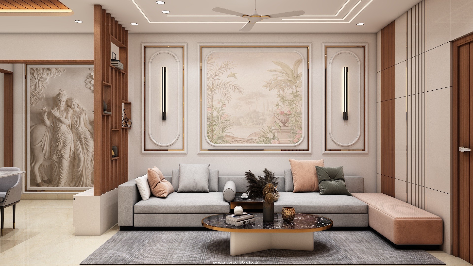 Living room plays the main part of interiors as people choose to keep the entrance attractive so that guests may like the ambience and get impressed. Living rooms usually include sofas, chairs, TV units and some decorative items. Our 3D design for the living room enhances your living space and adds the best attractive & stunning look with furniture arrangement, lighting design like Chandeliers, floor lamps, wall finishes like wallpapers, floor rugs, decorative elements like indoor plants or artwork and more. We provide you the 3D design visualization from multiple angles to get the complete feel of the space.