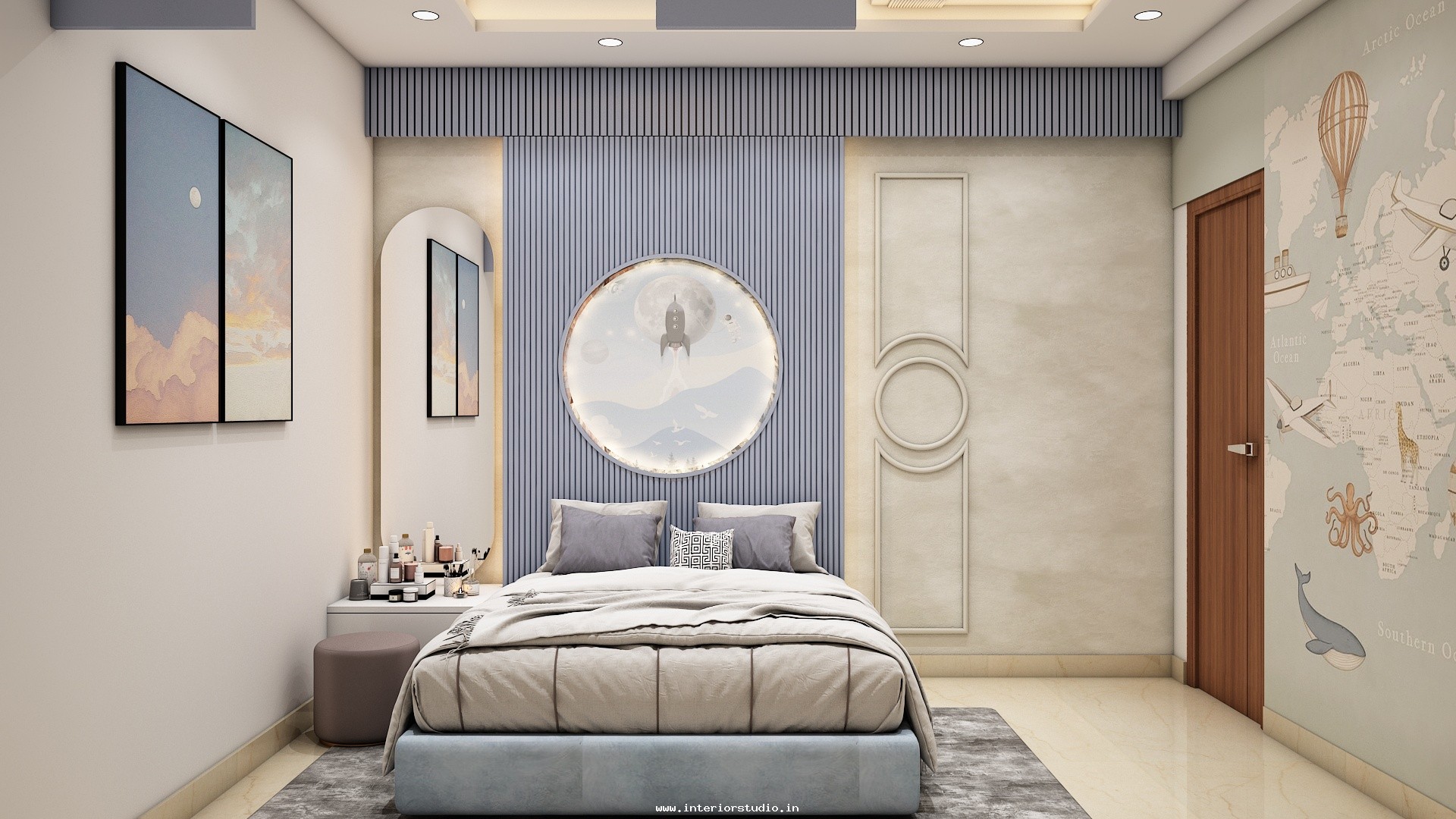 A bedroom can be decorated more attractively with creating a comfortable & personal refreshing place. Our designs enhance the beauty of the bedroom with details of bed positioning, headboards, pillows for comfort, nightstands for reading space with built in lamps, wardrobes to organize shoes, clothes etc with mirrors, dressing area with space for cosmetics, jewelry, grooming tools etc and floor carpet & colored wall finishes which can give more attraction to the bedrooms.