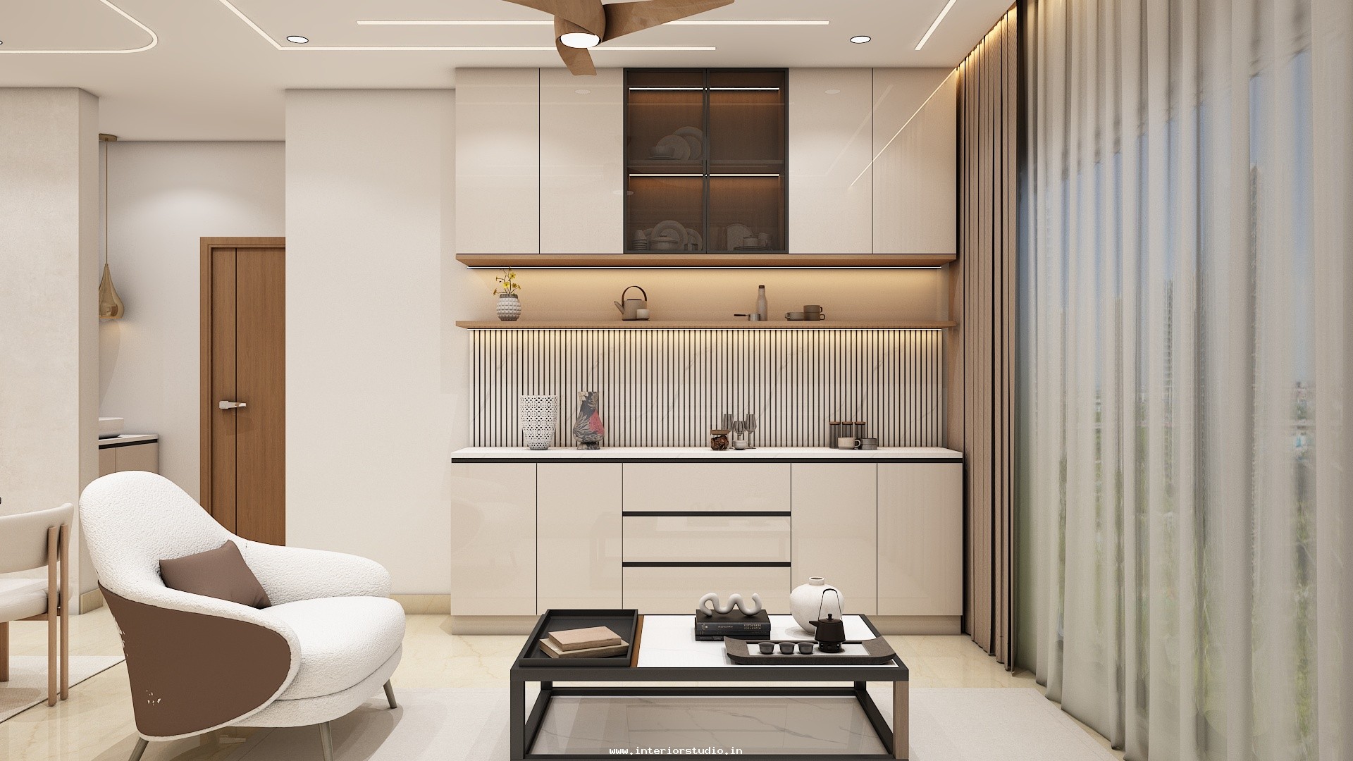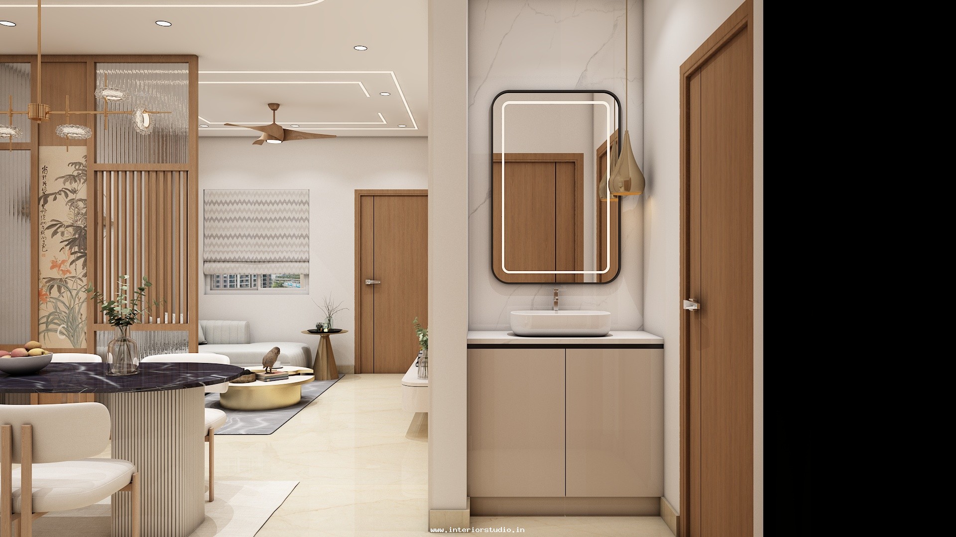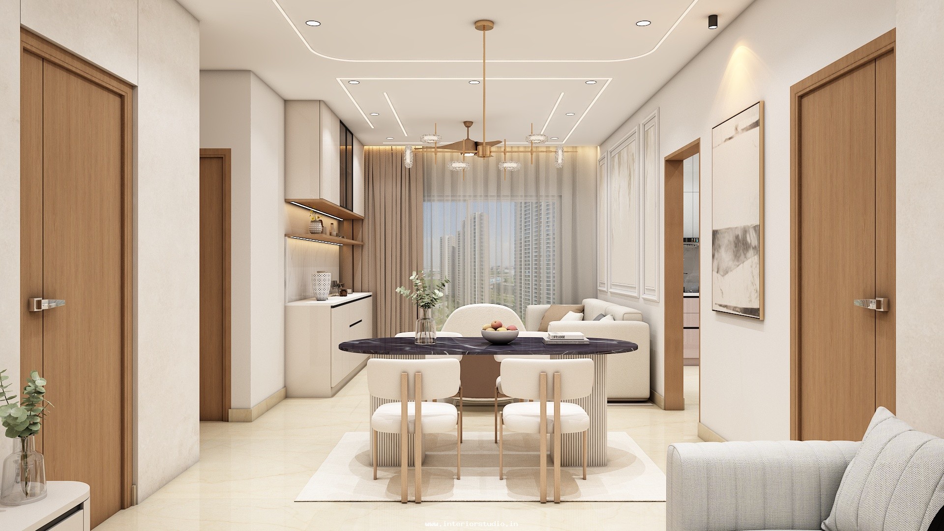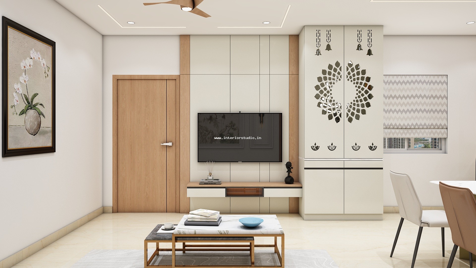 We provide such clear, accurate and stunning 3D home interior designs representing the realistic sense of layout. Our home designs include the Kitchen, Living Room, Pooja Room, Dining room, Bedroom, Foyer & False Ceiling.